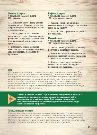 В книге даны различные способы по созданию домашнего алкоголя, много интересных, "не избитых" рецептов. Также есть глава посвященная безалкогольным домашним напитками, таким как квасы и компоты.