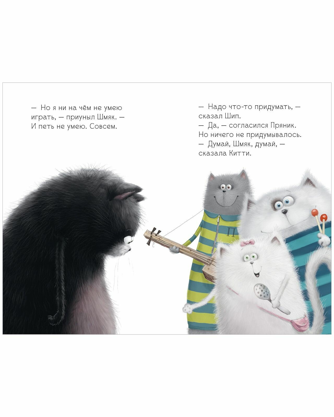 Друзья Шмяка организовали рок-группу «Цап-царапки». А что же делать котёнку, который не умеет играть ни на одном музыкальном инструменте и петь? Неужели он так и останется в стороне? Нет, у каждого есть свой талант и каждый может найти своё призвание. А вот что же придумал Шмяк, чтобы принять участие в общем деле читайте в книге. «Котенок Шмяк» - это увлекательная серия о добром и дружелюбном котенке по имени Шмяк и его друзьях. Книги из серии можно читать и изучать вместе с детьми, а также предложить ребенку почитать книгу самостоятельно – веселые картинки и простой слог подойдут для первого чтения как нельзя лучше! Мировой бестселлер о котенке Шмяке впервые издается на русском языке! Интересные иллюстрации и незабываемые герои сделают эту книгу самой любимой! Соберите свою коллекцию книг о веселом персонаже!