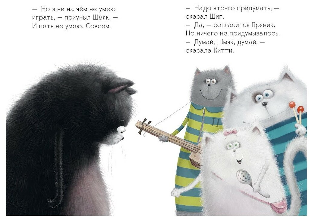 Кем Вы мечтали стать в детстве? Космонавтом? Балериной? А быть может, музыкантом? Скорее всего, мечты так мечтами и остались) А вот друзья Шмяка создали настоящую рок-группу «Цап-царапки»: Китти солирует, Шип играет на ударных, Пряник исполняет гитарные соло. У котят так здорово получилось, что Шмяку непременно захотелось стать частью этого рок-бенда. Только как? Ведь ни петь, ни играть на музыкальных инструментах котенок не умеет.