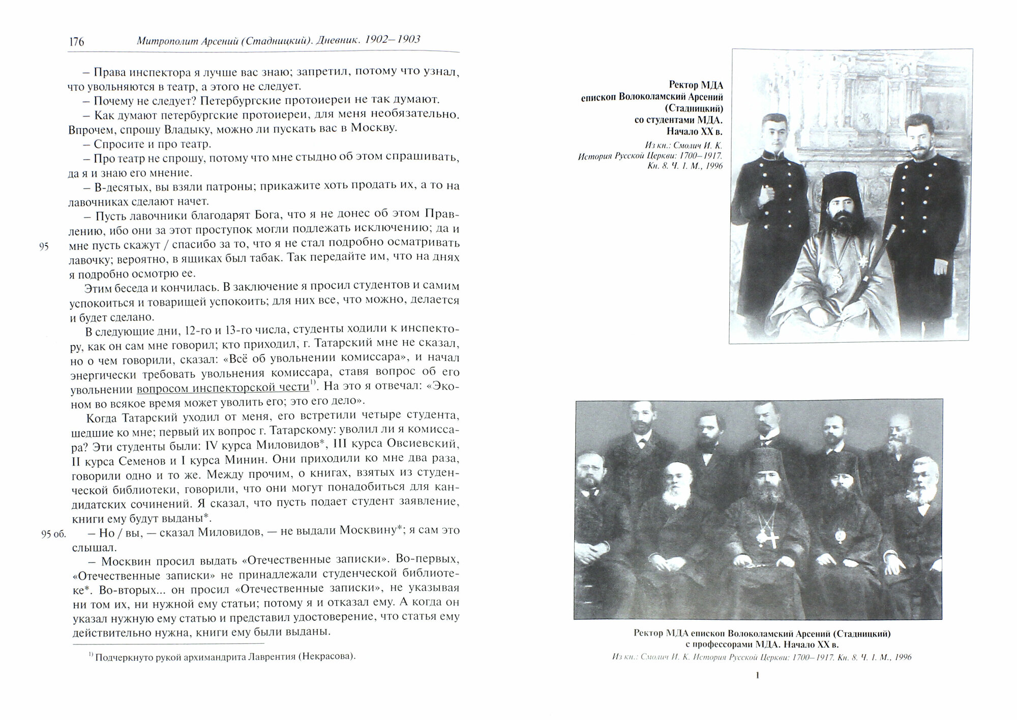 Данное многотомное издание Дневника митрополита Арсения (Стадницкого), одного из величайших русских иерархов первой половины XX века, включает в себя период с 1880 года по 1917 год. Дневник отражает этапы душевного развития самого Владыки, его деятельность на поприще душевного образования, многолетнее архиерейское служение на Псковской, а после на Новгородской кафедрах, участие в деятельности Государственного совета, Святейшего Синода, Поместного Собора Православной Российской Церкви 1917-1918 годов. Как ученый-историк, Владыка свидетельствовал о нарастании разрушительных процессов в русском обществе, как в церковном, так и в государственном и общественном аспектах. Широта и многообразие вопросов, затронутых в Дневнике, видоизменили его в энциклопедию русской жизни конца XIX - начала XX века. Второй том Дневника за 1902-1903 годы посвящается последним годам служения епископа Арсения в Московской епархии Волоколамским викарием и ректором Московской Нравственной академии.