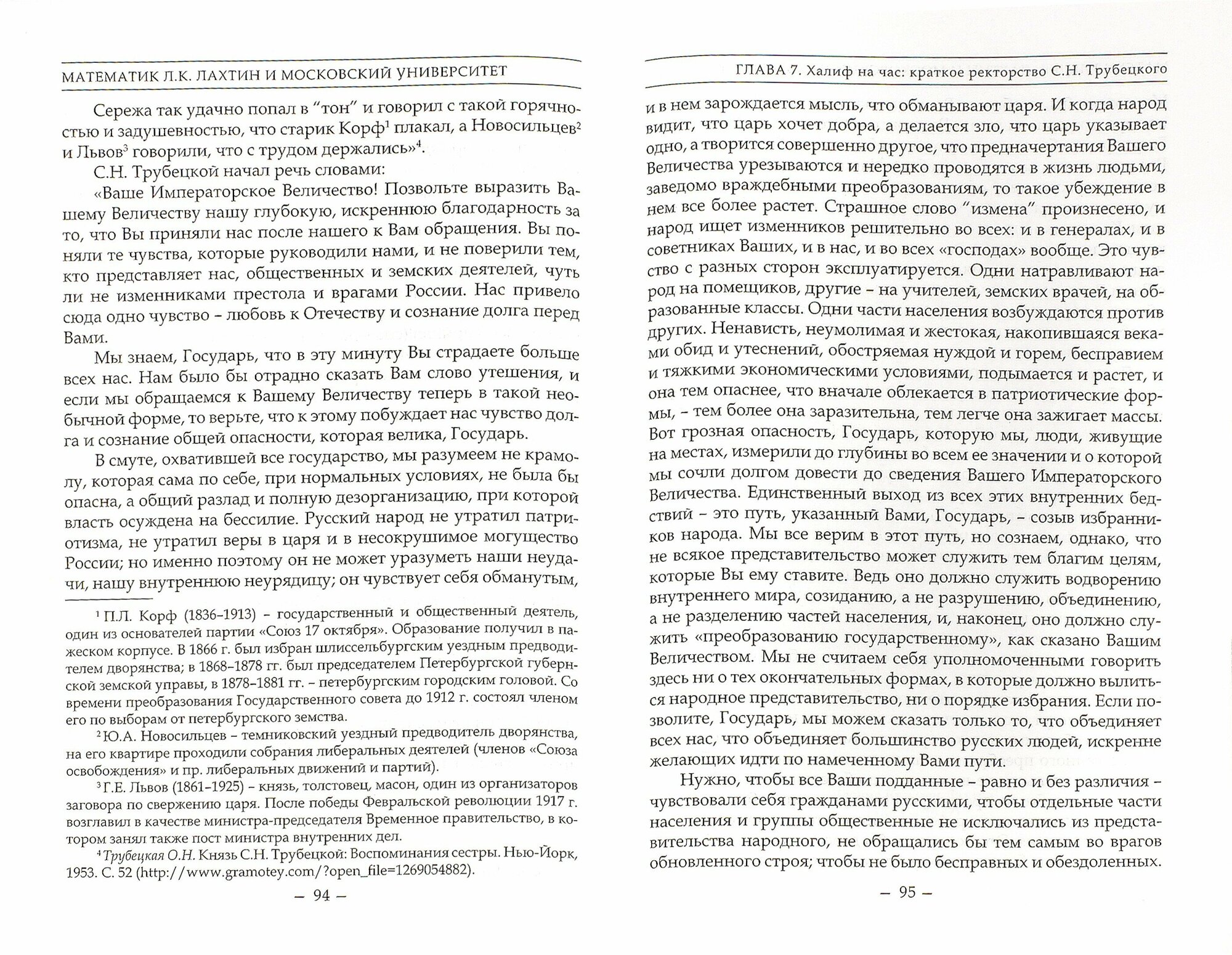 Книга посвящена талантливому математику, московскому профессору Леониду Кузьмичу Лахтину, хорошо известному на рубеже XIX-XX вв., а ныне незаслуженно забытому. Большая часть жизни ученого была связана с Московским университетом. В своей альма-матер он прошел извилистый путь, занимая последовательно должности: приват-доцента, профессора, помощника ректора, ректора, декана физико-математического факультета и снова профессора.