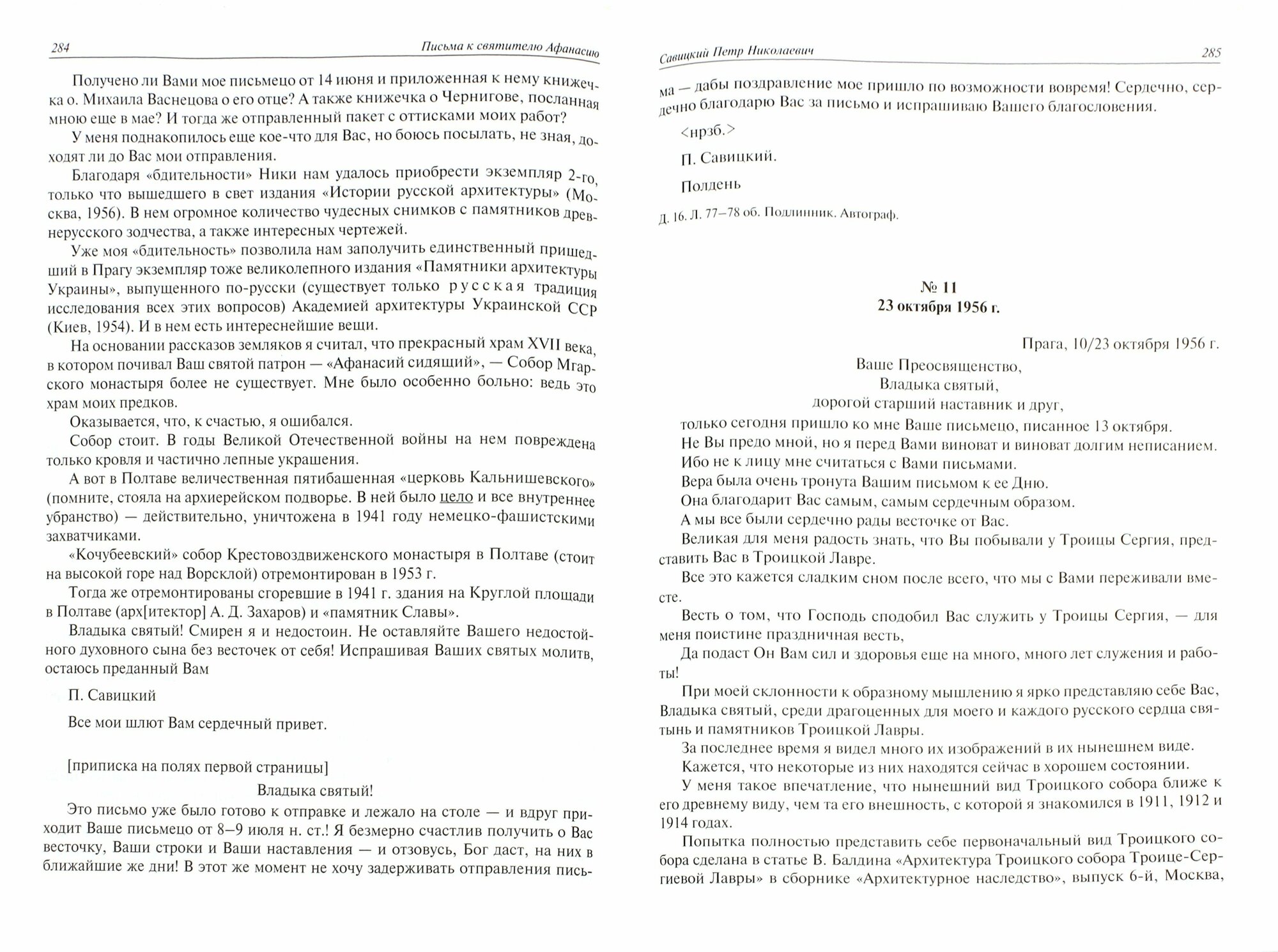 Сборник включает письма к святителю Ковровскому Афанасию (Сахарову) из архива ПСТГУ, большинство из которых относятся к периоду 1954-1962 гг. Эти документы объединены выдающейся личностью самого адресата - святителя Афанасия, исповедника, прошедшего лагеря и ссылки, литургиста, автора службы Всем святым, в земле российской просиявшим. Владыке писали видные церковные деятели, архиереи, священники и монахи, светские ученые и обычные верующие люди. Эти уникальные документы дают почувствовать эпоху не по официальным, а по личным источникам, представляя всю православную Россию середины XX в. В сборнике присутствуют и письма русских эмигрантов, нашедших пути письменного общения со святителем. Большинство документов публикуются впервые. Предназначается для всех интересующихся историей Русской Православной Церкви.