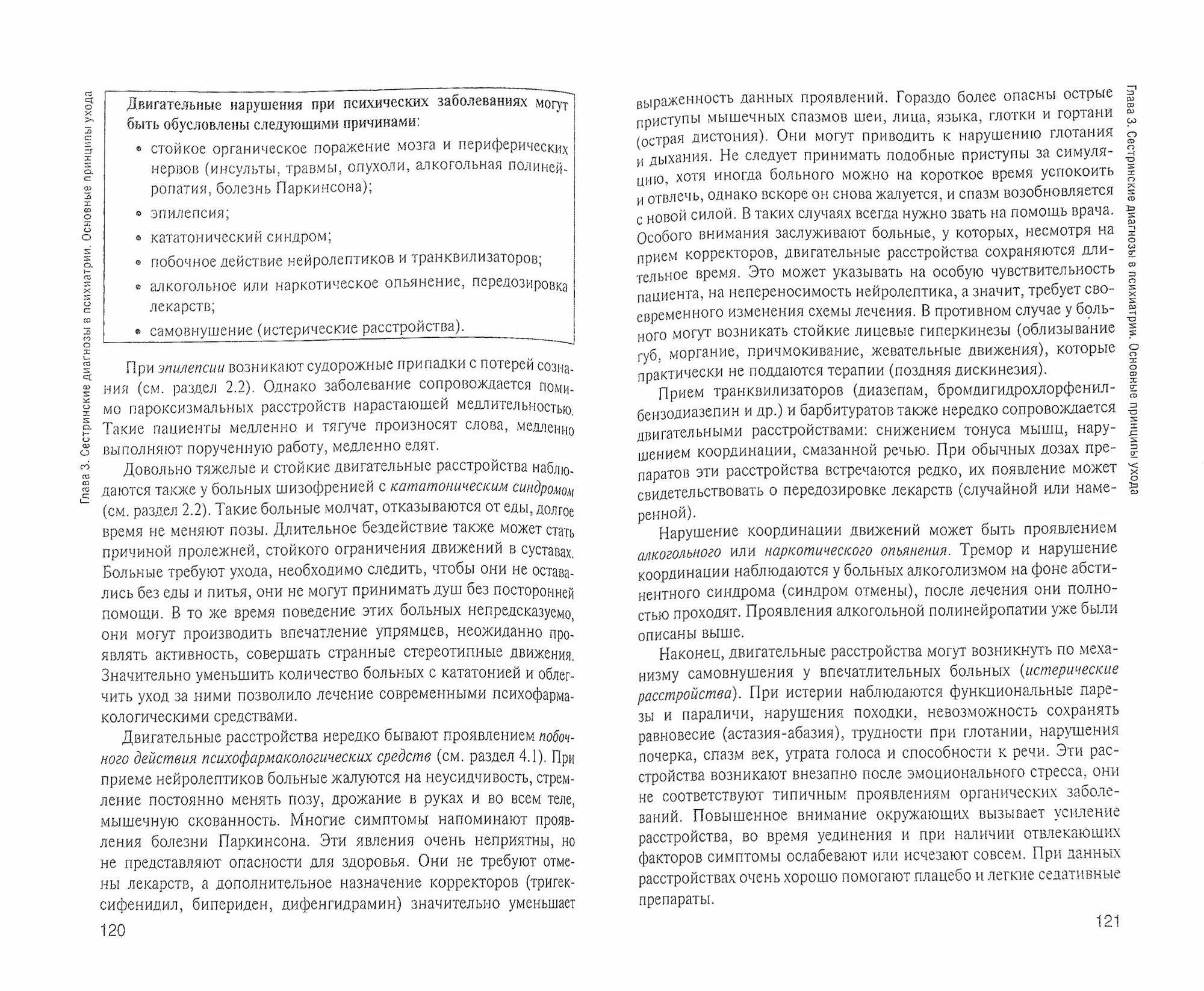 Особенно тщательно описаны психофармакологические лекарственные средства, их безопасность, вероятные побочные эффекты, риск возникновения зависимости. Это обусловлено тем, что данная группа лекарств широко используется в условиях непсихиатрических отделений. Большое внимание уделено организационным, правовым, этическим и психологическим проблемам обслуживания психически больных лиц. Отдельная глава посвящена тактике медицинской сестры в случае возникновения неотложных, угрожающих жизни состояний.