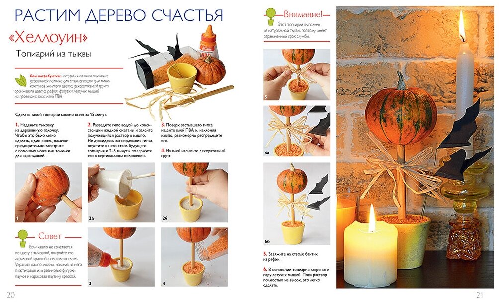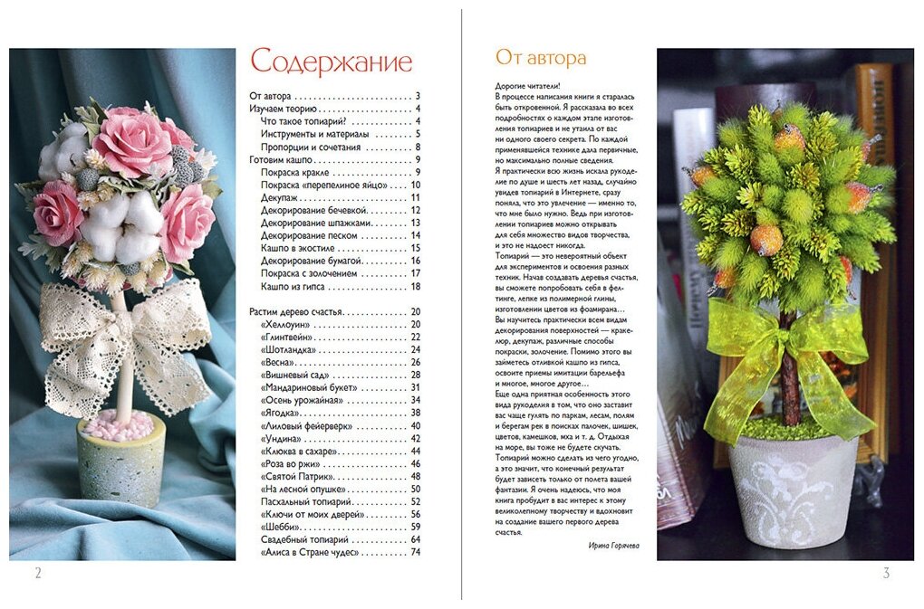 В данной книге, очень хорошо и подробно описан процесс изготовления деревцев. Мастер-классы, описанные в книге, позволяют создать любой топиарий, под интерьер, какой-либо праздник или просто на свой вкус. После изучения этой книги, я поняла что материалы могут быть абсолютно любыми, глина, кофе, пуговицы и вообще все чего ваша душа пожелает! Очень познавательно, красочно и интересно!