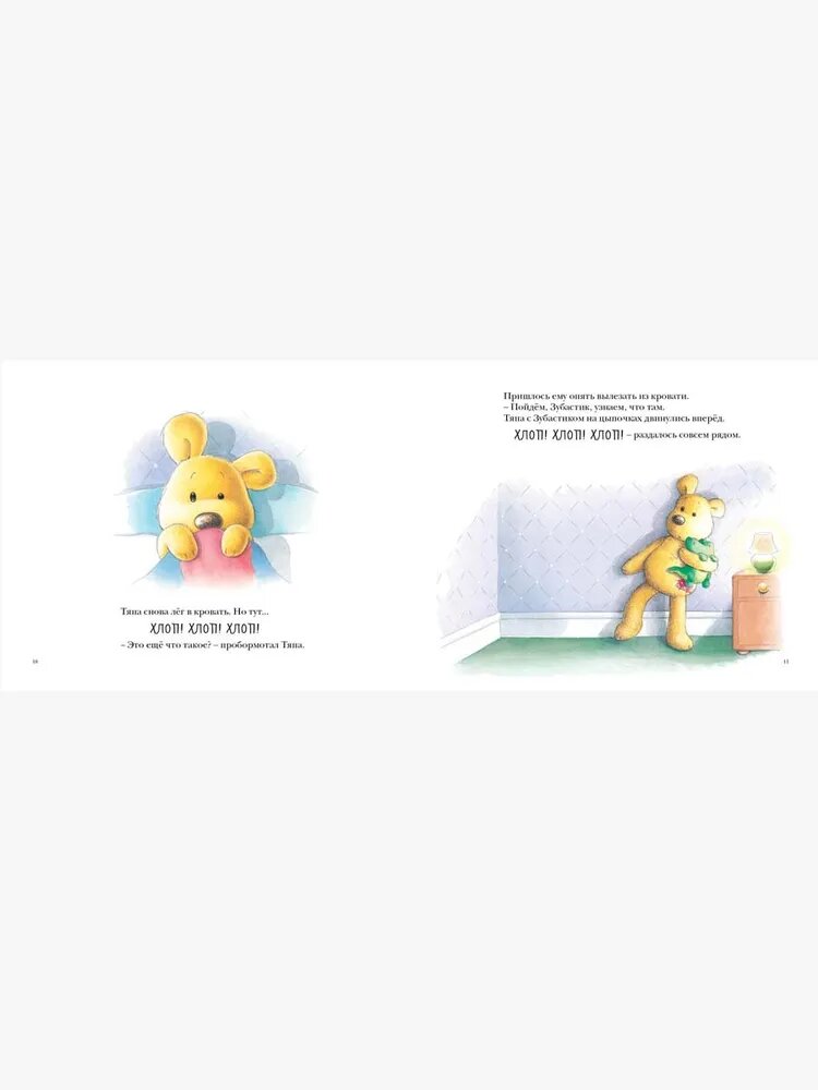 Уря! Тяпа с нами! В пункт самовывоза мы с дочкой вчера шли вприпрыжку, а обратно - очень медленно, трепетно прижимая к себе новую книжку. После хитовой первой части, вторая рискует стать еще одним таким же хитом. На этот раз речь пойдет о детских страхах: малыши, бывает, пугаются непонятных звуков в темной квартире, Тяпой вот сначала тоже заволновался, а потом пошел и разобрался со всеми непонятными звуками, которые оказались всего навсего скрипом дверцы, хлопаньем занавески на ветру, капающим краном и.... бурррчанием собственного голодного животика :) В этой книжке с Тяпой по-прежнему его друг Зубастик (который к сожалению не издает больше никаких смешных звуков, но их можно досочинить самим). Очень удачная серия книжек с ненавязчивой моралью и очаровательными иллюстрациями.