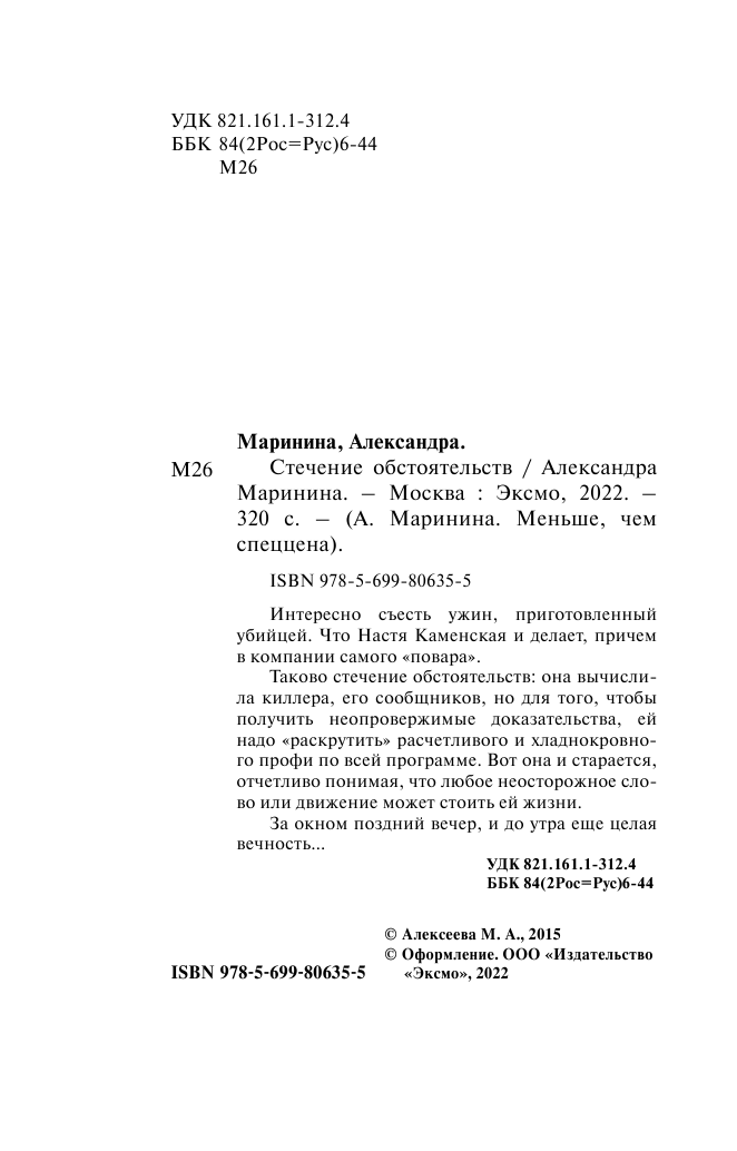 Книга: Стечение обстоятельств (Маринина Александра Борисовна); ООО "Издательство "Эксмо", 2015