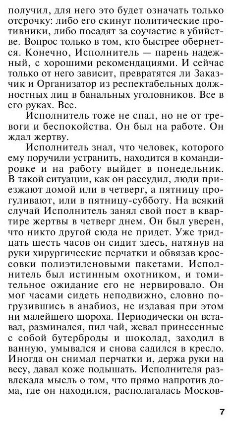 Эта книга-из серии детективов о следователе Каменской. Это была первая книга которую я прочитала про эту героиню. Это был очень захватывающий эксперимент - перечитать книгу, написанную Марининой и прочитанную мной 15 лет назад. В то время эта книга была как белая ворона на фоне серых и "прилизанных" советских детективов про "правильную" милицию, а время откровенной чернухи не наступило. Это было очень нестандартно и безумно увлекательно. Это потом Маринина "обуржуазилась", стала воображать себя Агатой Кристи всея российского детектива, а потом вообще скатилась к скучному назидательно-нравоучительному повествованию. Так я разочаровалась в Марининой. Оказывается и назидательность и нравоучительность были свойственны автору и в самой первой книге. Абсолютно все, что произносят со страниц книги ее "положительные" герои - сомнению не подлежит. Гениально мудрый начальник Гордеев, гениально мудрый Чистяков, гениальный отчим и сама героиня - априори не ошибаются. Они могут только немного заблуждаться. Сюжет самой книги довольно неплохо закручен, как и все ранние романы Марининой, но преступление раскрывается посредством нескольких "озарений", так где же знаменитая логика главной героини???? Метод вычисления Галла не впечатляет, ровно и как "случайно забытое в кармане расписание электричек". При таких смешных проколах грош цена киллеру экстракласса. В общем, иногда смешно. Ставлю четверку за интересное изложение. И поменьше морализаторства госпоже Марининой