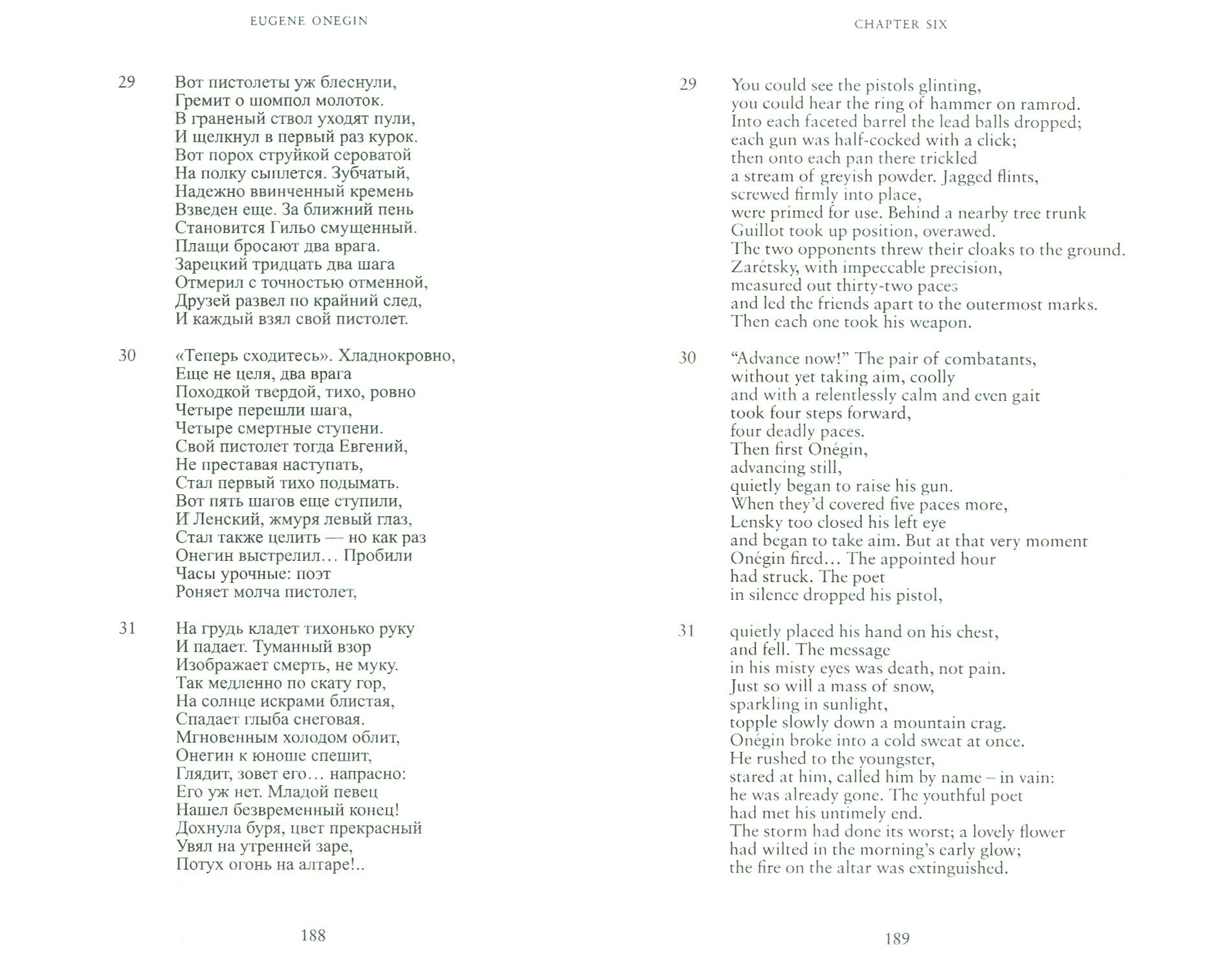 "Какая же ерунда" - думала я, пока читала очередной английский вариант. Нет, ни один иностранец не сможет узнать насколько прекрасен русский вариант Онегина, а соответственно всегда будет лишен удовольствия от прочтения этого "красного бриллианта" русской литературы. Это мой пятый вариант, и снова он хорош! но это что-то абсолютно другое. Причем все переводы, что я читала конечно другое со знаком "-" именно в сравнении С. Если забыть об оригинале(уничтожен, потерян, недоступен), то вполне неплохо написано, но я бы даже вариант тогда озвучивала как "набоковский онегин", "фолленовский онегин", "кларковский онегин", то есть это даже не перевод, это само по себе отдельное произведение переводчика. Все-таки в прозе отрыв, не так заметен, в поэзии - Невыносим! Верный и красивый перевод??? Миссия Невыполнима! Пушкин написал шедевр, и конечно я после прочтения стала больше понимать иностранцев, которые не видят ничего "великого". Да какой-то там подмастерье Байрона.... Да, друзья, в ваших переводах, и я ничего великого и прекрасного не вижу. Пушкинской энергии здесь нет, а он ведь гений.