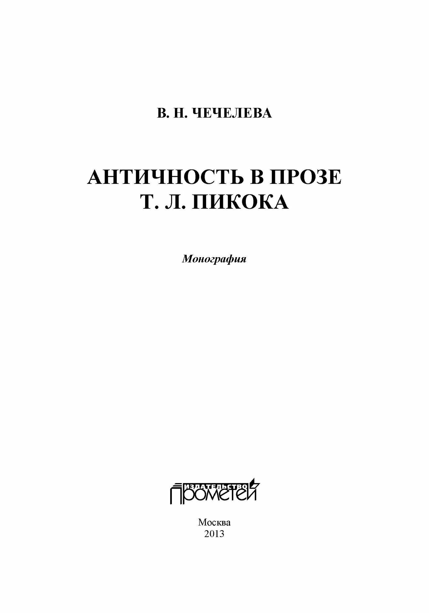 Античность в прозе Т. Л. Пикока. Монография (Чечелева Вера Николаевна); Прометей, 2013
