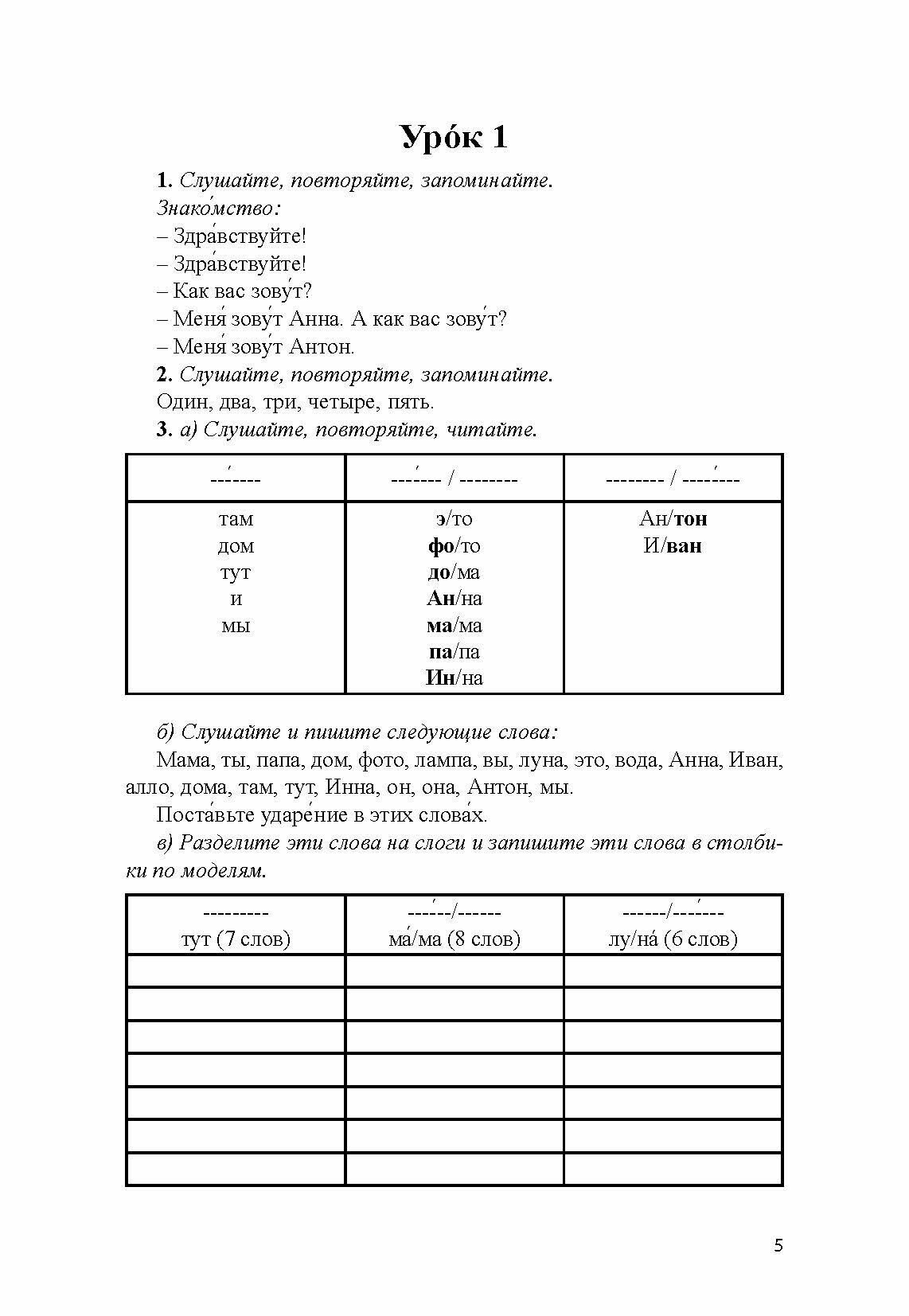 ( теории или каких либо объяснений грамматики нет, сплошные упражнения! Все упражнения начинаются со слов "слушайте,повторяйте, читайте,запоминайте". Как иностранец может вообще правильно прочитать,если он не учил русский язык?! Однозначно не хватает диска с начитанным материалом! Очень много упражнений на постановку ударений! Зачем?!