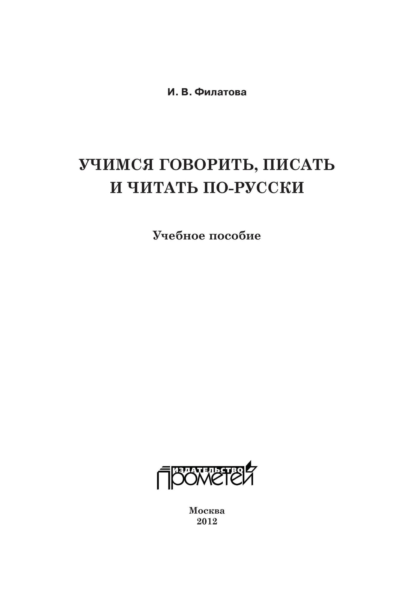 Учимся говорить писать и читать по-русски. Учебное пособие (Филатова Ирина Валерьевна); Прометей, 2012