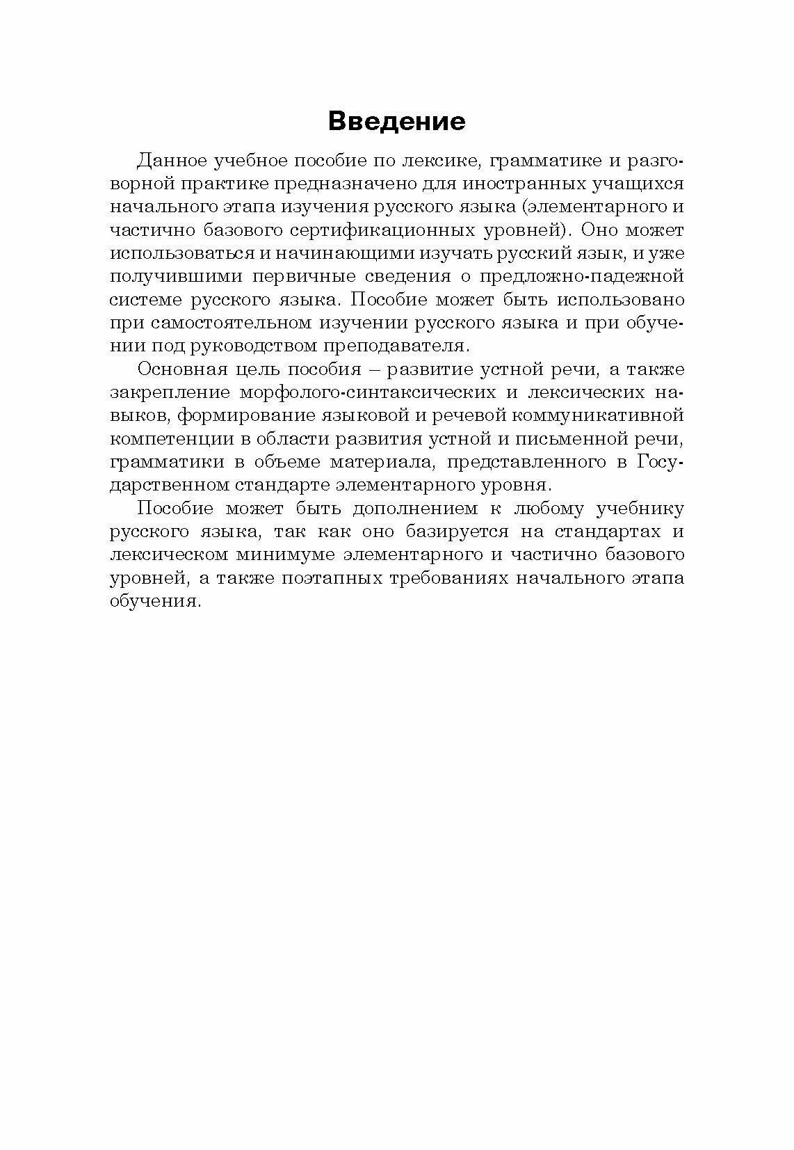 Учебное пособие по лексике, грамматике и разговорной практике предназначено для иностранных учащихся начального этапа изучения русского языка (элементарного и частично базового сертификационных уровней).