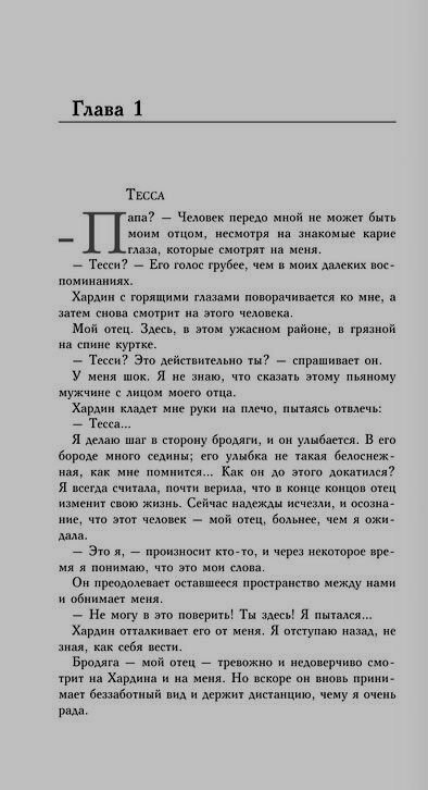 Отношения Тесс и Хардина далеки от идиллии. Бешеная страсть, неодолимое влечение притягивают их друг к другу и в то же время мешают хладнокровно решать проблемы, которые неизбежно возникают у всех людей без исключения: сложности в отношениях с родителями и друзьями, необходимость строить карьеру, наконец, разные взгляды на брак.