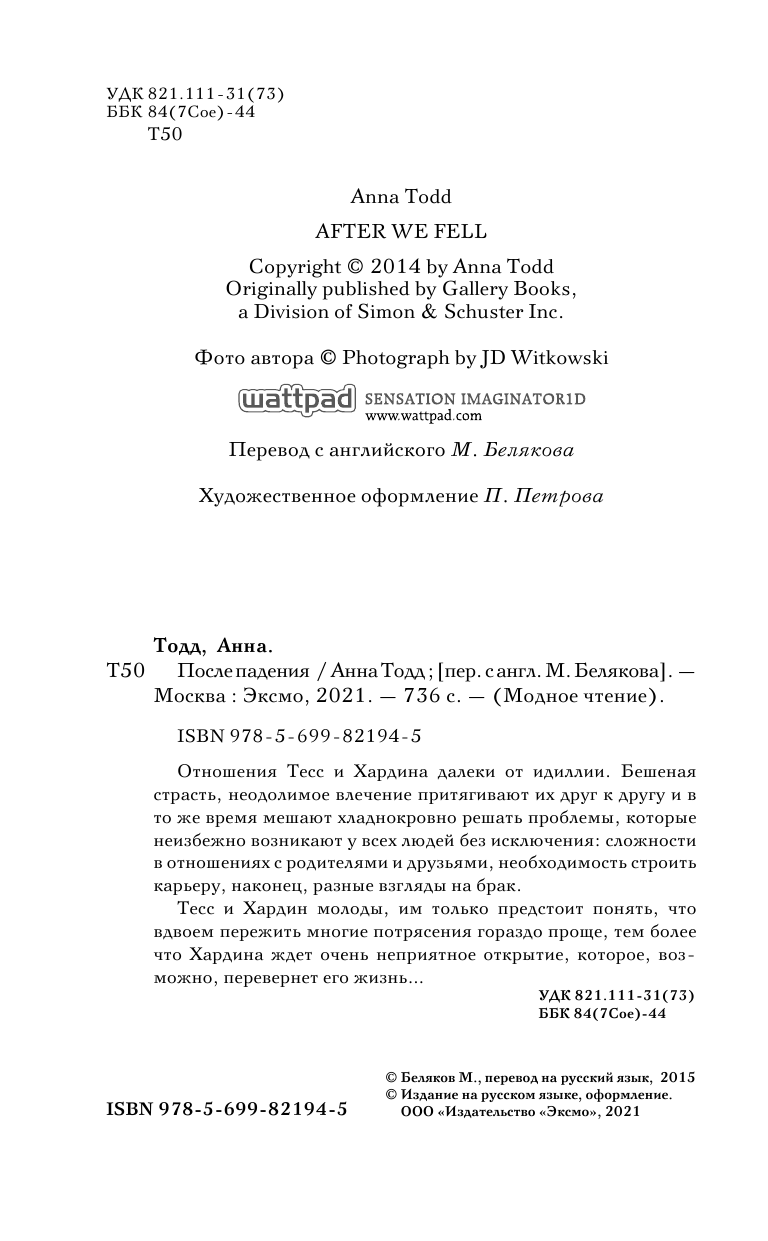 Книга: После падения (Анна Тодд); Эксмо, 2021