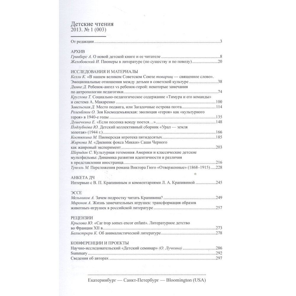 В каждом номере мы предполагаем публиковать блок статей, связанных общей проблематикой, методом или материалом. Такую подборку мы будем стараться делать цельной, объединенной внутренней логикой. В то же время остальные материалы номера могут быть вольными (и невольными) участниками диалога с магистральной темой, а могут быть совершенно независимыми контрапунктами в общей полифонии номера. Третий выпуск альманаха мы посетили исследованиям, которые, на наш взгляд, демонстрируют, что изучение эволюции общественно-педагогических идей, воплощенных в детской литературе, типологии героического, генезиса этических принципов, влияния взрослой литературной традиции на детскую, позволяет кое-что прояснить в отечественной детской литературе XX в.