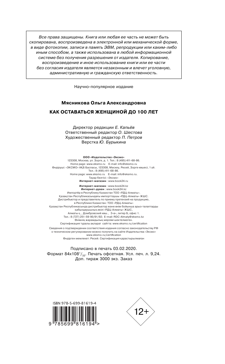 Как оставаться Женщиной до 100 лет (Ольга Александровна Мясникова); Эксмо, 2020