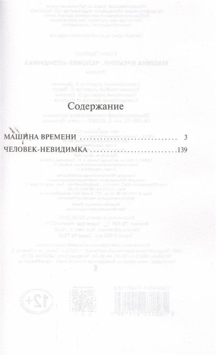"машина времени" и "человек-невидимка" - два замечательных произведения Г. Уэллса, отца научной фантастики, под одной обложкой.