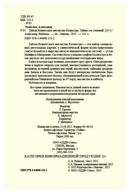 Сервис сравнения цен СкидкаГИД предлагает сравнить цены на товар «Книга: Табели Египетского масонства Калиостро. Тайны ста степеней (Рыбалка Александр); Энигма, 2015»