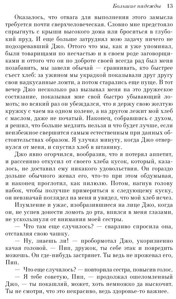 Чарльз Диккенс - один из тех авторов, кто не нуждается в представлении. Его книги будут кочевать из библиотеки в библиотеку - я говорю о библиотеках семейных, подразумеваю разные поколения. "Большие надежды" - прекрасное произведение, которое всегда будут читать и которое никогда не потеряет своей актуальности. Конечно, хотелось бы посоветовать вам роман в оригинале, но и перевод тоже достаточно хорош. Правда, читать книгу в мягком переплете не очень удобно, так как она "толстенькая" и расползается в руках. Но твердые переплеты тоже не очень крепкие, так что на ваше усмотрение. Роман заслуживает внимания!