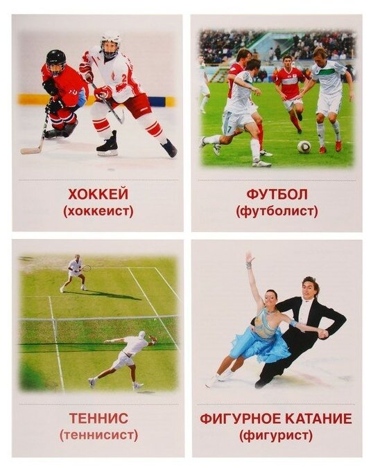 Предметные картинки - универсальное наглядное пособие. Его можно использовать на любых занятиях, в играх, самостоятельной деятельности детей. К каждой предметной картинке прилагаются: описание, стихотворение, загадка, вопросы. Используя текст карточки и собственные знания, дети составляют рассказ с элементами описания. В наборе 16 демонстрационных картинок: баскетбол, бег, бокс, велосипедный спорт, волейбол, гимнастика, гребля, лыжный спорт, плавание, прыжки в воду, прыжки с шестом, теннис, фигурное катание, футбол, хоккей. Материал: картон.