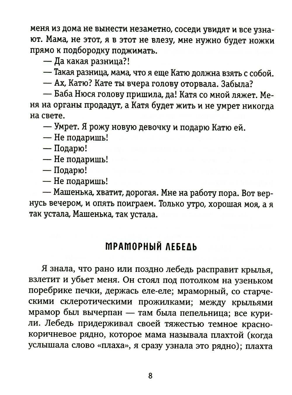 Почему - детский? Потому что взгляд повествователя в каждой главе - будто то гротескная сюрреалистическая вставка, или выдранное из контекста воспоминание, или рассуждение о прочитанном - по-детски прямой, простой, жестокий. Книга вообще жестока: местами душная до невозможности. Но читается при этом парадоксально легко. С одной стороны, погружаешься в омут, с другой - выходишь куда-то за пределы реальности. Как будто кто-то увеличил резкость, и размытый мир с вялыми какими-то проблемами и страхами прыгнул тебе в глаза.