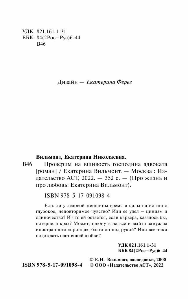 Проверим на вшивость господина адвоката (Вильмонт Екатерина Николаевна); ООО "Издательство Астрель", 2019