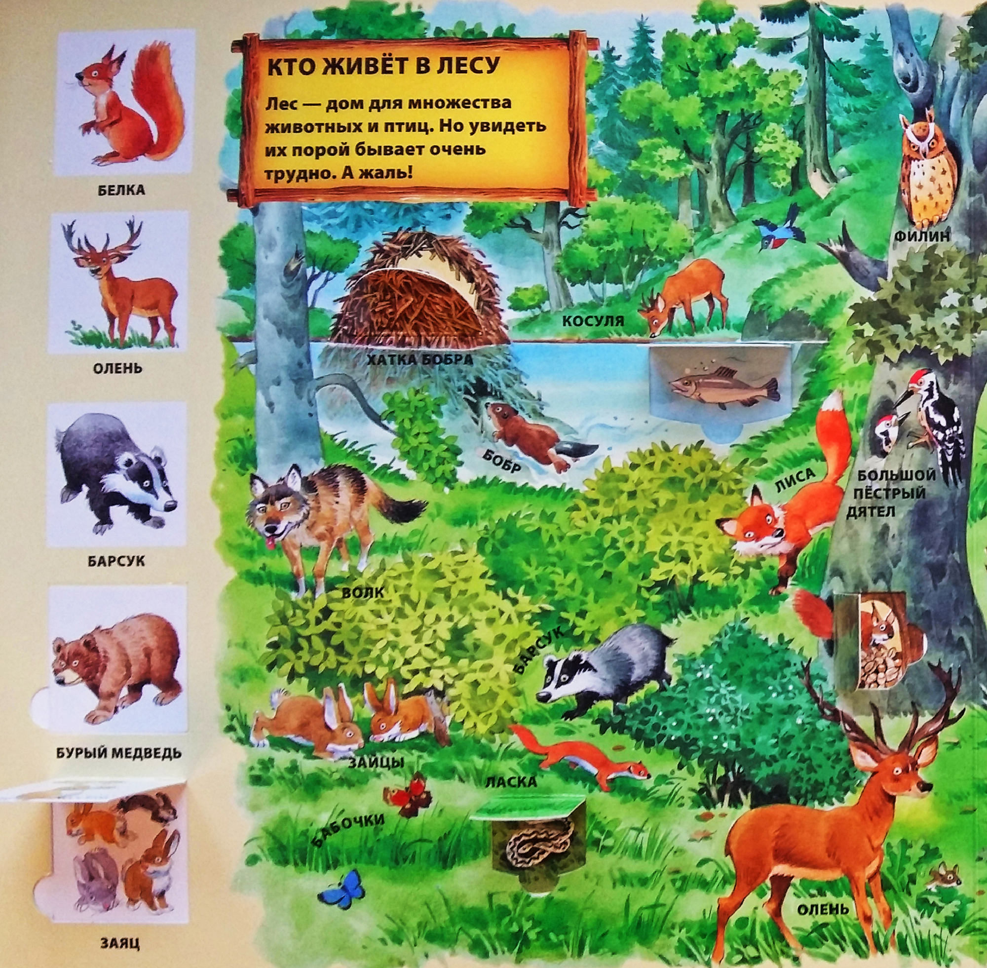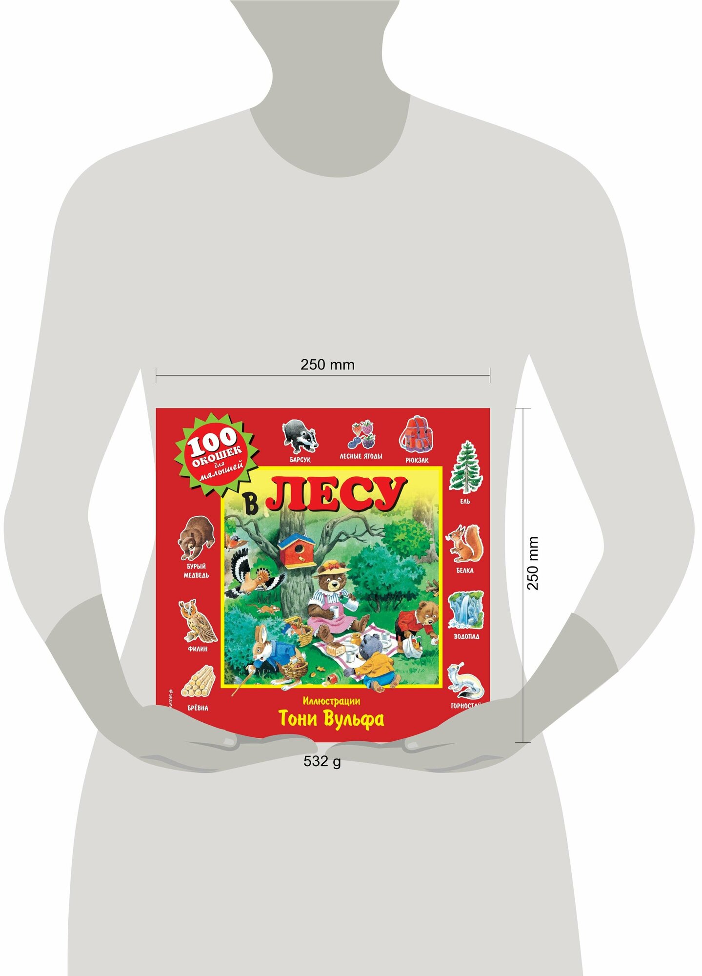 Эта книга наверняка станет одной из самых любимых у вашего малыша - ведь дети в возрасте 2-х - 3-х лет обожают манипулировать предметами, и книга с окошками - это прекрасный объект для их маленьких пальчиков. Каждый раз, когда малыш своей крошечной ручкой открывает окошко в книге, он становится умнее, потому что совершает целенаправленное осознанное движение пальчиками, а развивающий импульс в этот момент поступает в мозг. А если малыш при этом рассматривает замечательные иллюстрации Тони Вульфа, если он вместе с мамой или бабушкой путешествует по страницам книги, знакомится с тайнами леса и узнает, какие деревья там растут, какие животные обитают и что происходит в лесу зимой и летом, то - становится ясно, что такая книга непременно должна быть у каждого ребенка.