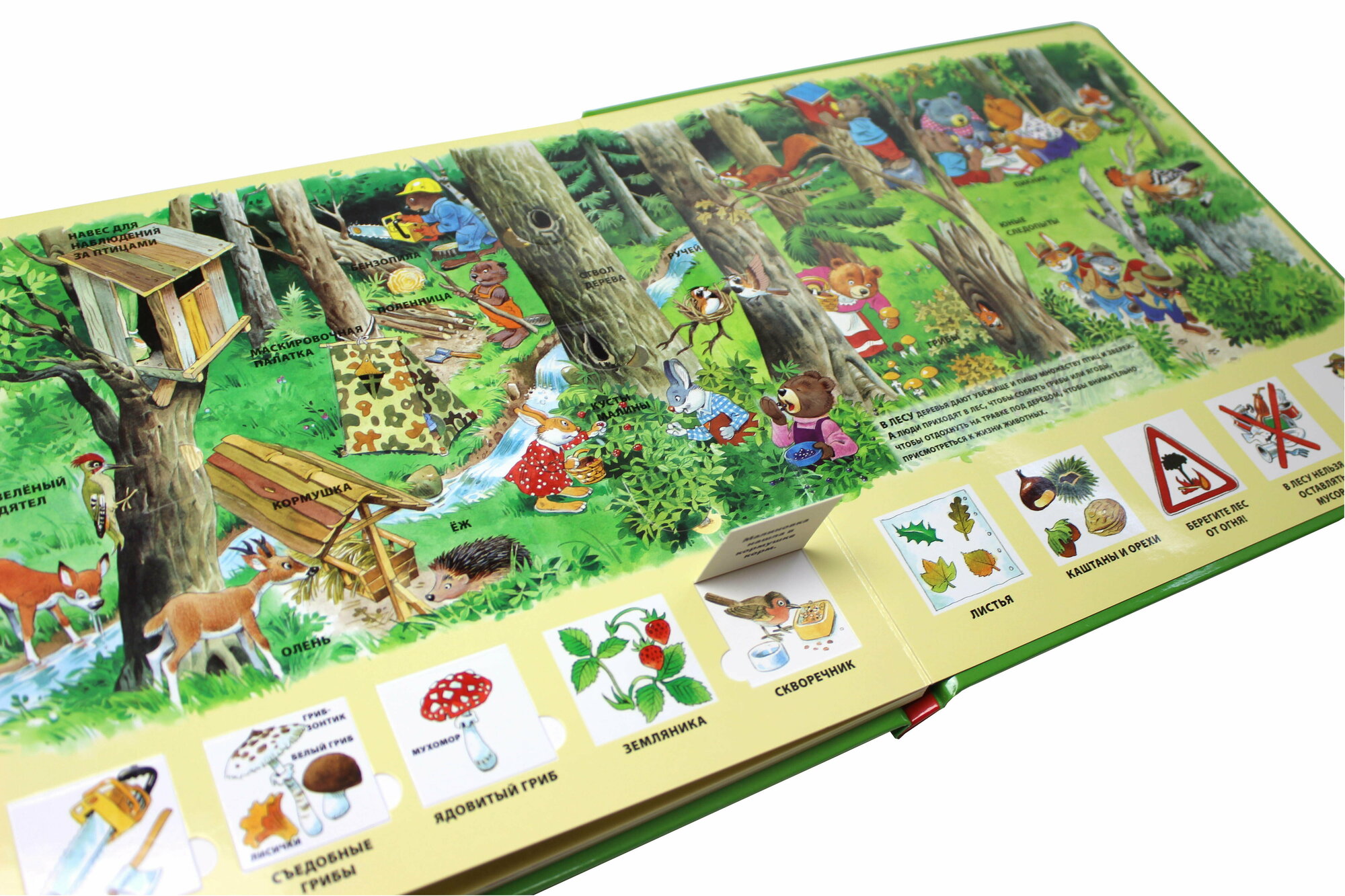 Ребенок слишком активный и просто посадить ребенка за книгу проблема. Книга как раз для первого знакомства с книжкой, иллюстрации интересные, актуальные и яркие, ребенок с удовольствием открывает окошечки, которые помогут разговорить ребенка. По ней мы изучили животных и фрукты,немного о деревьях, стали определять "на", "за" и тд