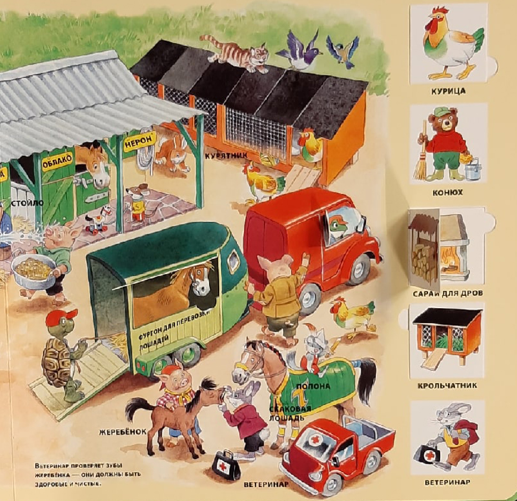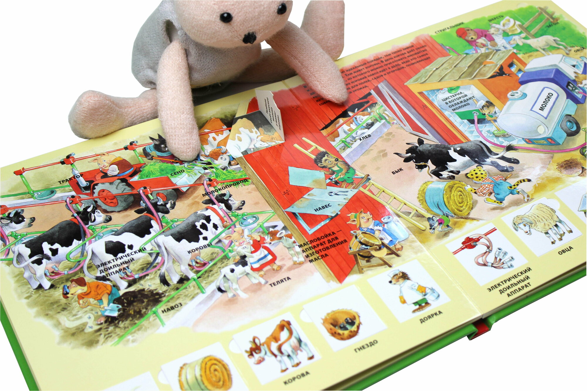 Эта книга наверняка станет одной из самых любимых у вашего малыша - ведь дети в возрасте 2-х - 3-х лет обожают манипулировать предметами, и книга с окошками - это прекрасный объект для их маленьких пальчиков. Каждый раз, когда малыш своей крошечной ручкой открывает окошко в книге, он становится умнее, потому что совершает целенаправленное осознанное движение пальчиками, а развивающий импульс в этот момент поступает в мозг. А если малыш при этом рассматривает замечательные иллюстрации Тони Вульфа, если он вместе с мамой или бабушкой путешествует по страницам книги, знакомится с жителями сказочной фермы и узнает, как они работают на конюшне, в поле и в саду, то - становится ясно, что такая книга непременно должна быть у каждого ребенка.