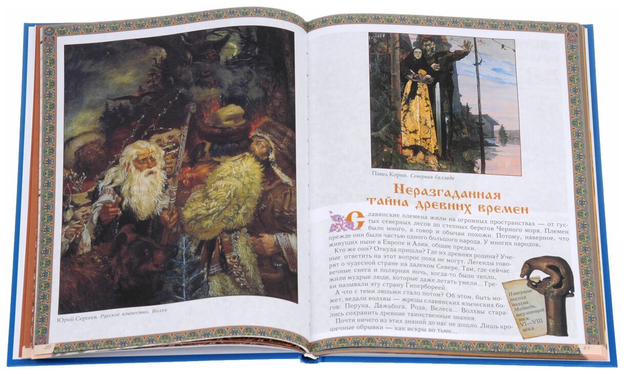 Абсолютно на каждой странице-иллюстрации.Известные художники,узнаваемые работы.Одно событие на разворот.Понравилось,что вцелом достигнуто ощущение Руси,"русскости" .Текст адаптирован к детскому восприятию.Отличный подарочный вариант.