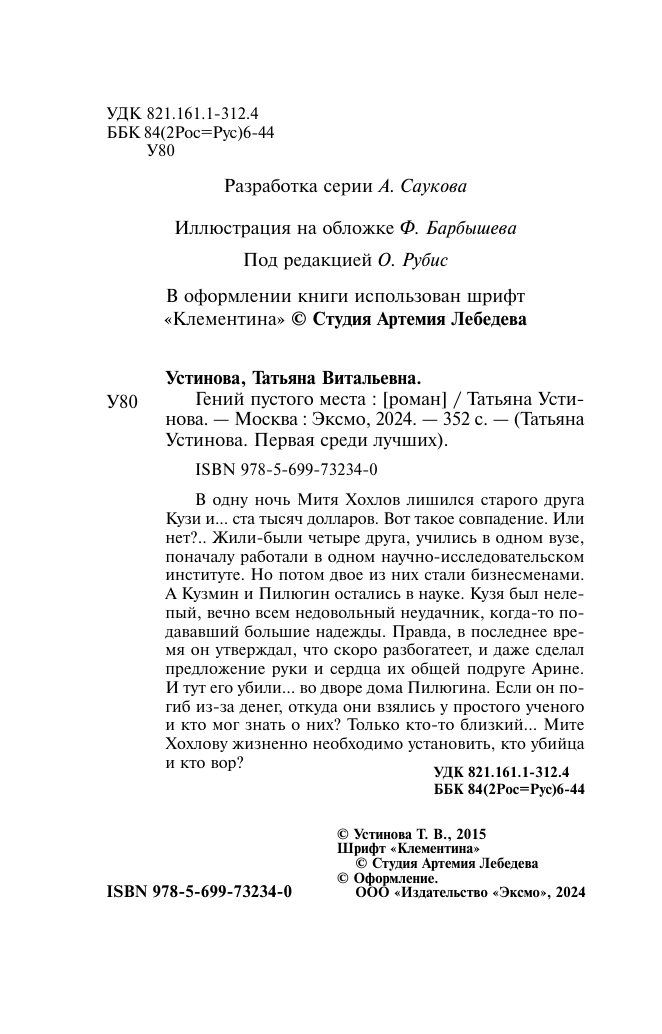 Книга: Гений пустого места (Устинова Татьяна Витальевна); ООО "Издательство "Эксмо", 2015