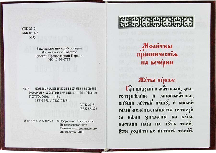 Молитвы священнические на вечерни и на утрени. Последование ко Святому Причащению (без автора); ПСТГУ, Издательство Православного Свято-Тихоновского гуманитарного университета, 2010