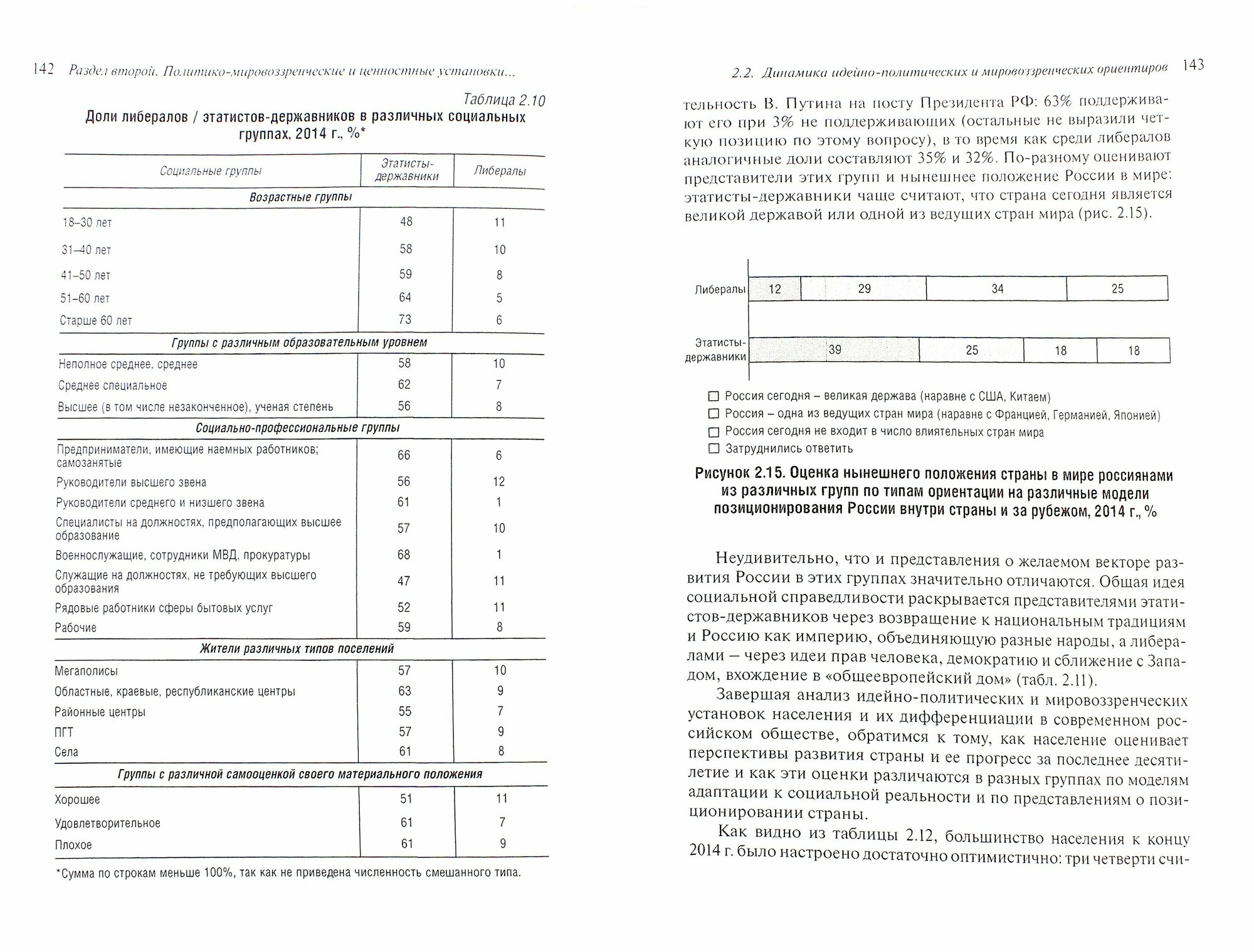 В книге представлен комплексный анализ состояния и динамики российского общества, оказавшегося перед лицом новых вызовов и угроз, обусловленных воздействием внешнеполитических событий и процессов, а также изменением мировой экономической конъюнктуры на повседневную жизнь российских граждан. Рассматриваются особенности отношения различных социальных и территориальных групп населения к новым реалиям времени в контексте результатов социально-экономических и социокультурных трансформаций, произошедших в России за годы реформ. В основе книги - данные многочисленных общенациональных социологических исследований и их сопоставительный анализ, отражающий динамику развития и нынешнее состояние нормативно-ценностной системы населения страны.