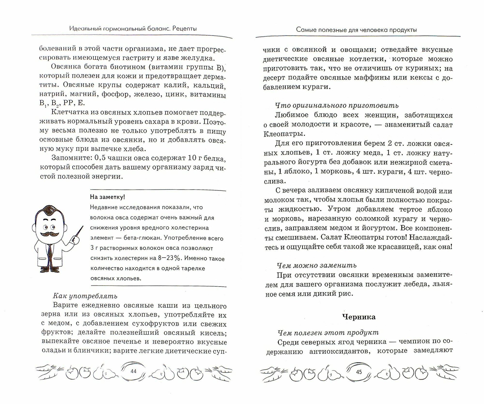 Есть вставка "Это интересно!", в котором интересные дополнения к способам приготовления блюд и содержания веществ, влияющих на гормональный обмен.