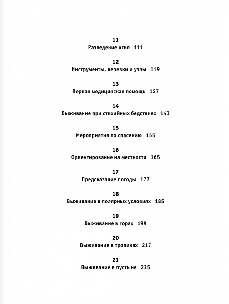 Не вполне понятно, для каких это "мальчиков" предназначена эта книга. Мне кажется, что для взрослых (но с молодой душой) дядей, склонных к экстремальному туризму во время отпуска. Недавно один такой мой знакомый во время отпуска в Киргизии погиб - в 60 лет по горам ходил... Нормальным мальчикам-школьникам такую литературу давать читать крайне опасно, еще действительно решат, что готовы к выживанию "в любых условиях - от арктических холодов до палящего зноя пустыни". Впрочем, до "палящего зноя пустыни" юный читатель книги всё равно вряд ли доедет, далеко он (если только это не летняя жара в мегаполисе).