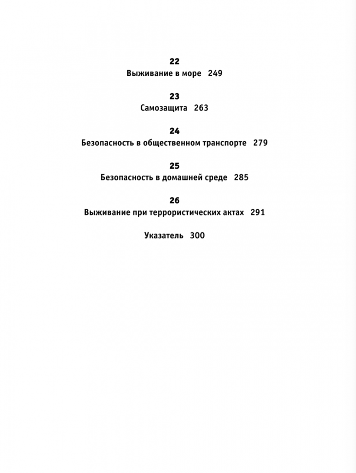 Книга содержит базовые принципы выживания в любых условиях – от арктических морозов до палящего зноя пустыни – и в любых ситуациях – от потери пути в малонаселенной местности до пожара в городе.