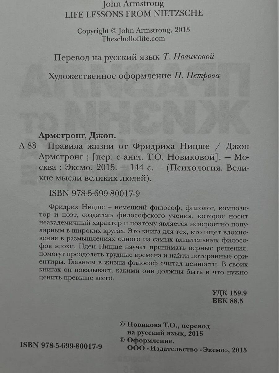 Правила жизни от Фридриха Ницше (Армстронг Джон); ООО "Издательство "Эксмо", 2015