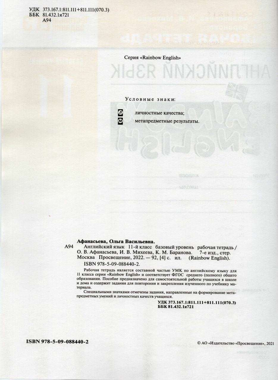 Рабочая тетрадь является составной частью УМК по английскому языку для 11 класса серии "Rainbow English" и соответствует ФГОС среднего (полного) общего образования. Пособие предназначено для самостоятельной работы учащихся в школе и дома и содержит задания для повторения и закрепления изученного по учебнику материала.