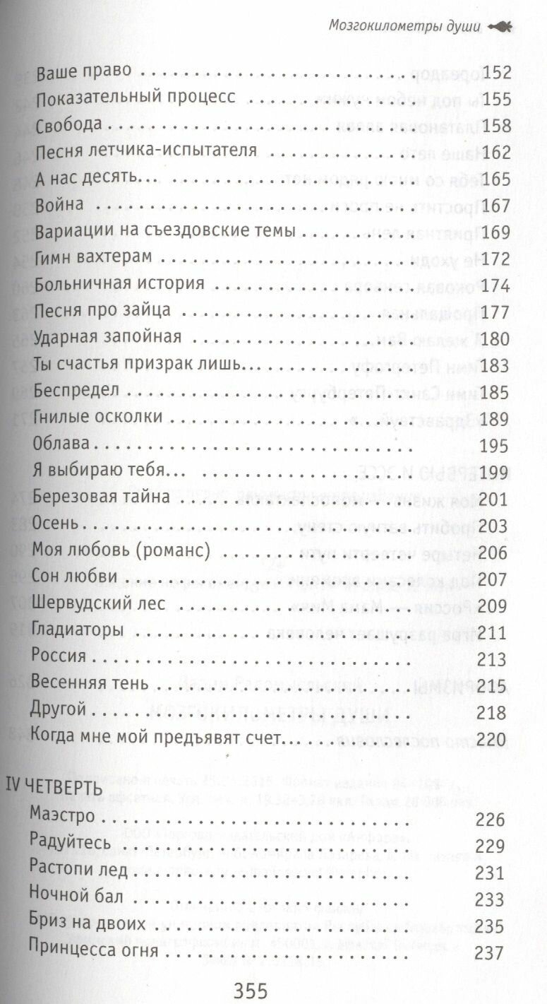 Душа и тело - это две основополагающие и абсолютно равные субстанции, образующие человека. Что первично? Принадлежащий плоти мозг, рождающий мысль, которая будоражит бесплотную душу? Или это душа, улавливая в тончайших эфирах некие импульсы, непостижимым своим движением посылает их в мозг, заставляя пульсировать мысль, которая формирует слово, жгущее сердца людей? Великий русский мыслитель Иван Ильин писал о том, что человек творящий - будучи, по сути своей, несовершенным - не способен в силу своего тварного естества точно выразить словами в своих произведениях идеальный замысел Создателя. Тем не менее автор этой книги - как во все века и во все времена - предпринимает очередную, отчаянную попытку расшифровать сигналы Высшего Разума, чтобы по определению несовершенным, Человеческим языком донести их до людей в своих стихах, афоризмах и размышлениях. В своих - "Мозгокилометрах души". Возможно, это новое словообразование станет своеобразным определением затратного механизма человека на его пути к Истине.