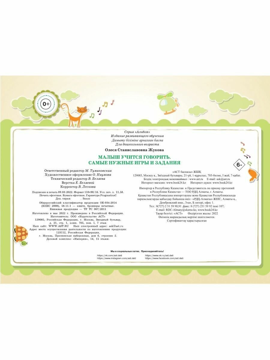 Малыш учится говорить. Самые нужные игры и задания (Жукова Олеся Станиславовна); ООО "Издательство Астрель", 2020