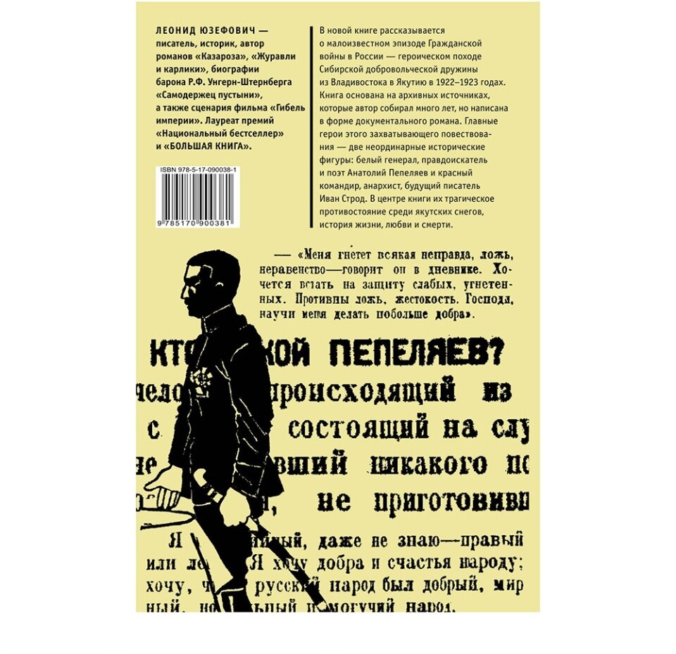 Новая книга Леонида Юзефовича рассказывает о малоизвестном эпизоде Гражданской войны в России - героическом походе Сибирской добровольческой дружины из Владивостока в Якутию в 1922-1923 годах. Книга основана на архивных источниках, которые автор собирал много лет, но написана в форме документального романа. Главные герои этого захватывающего повествования - две неординарные исторические фигуры: белый генерал, правдоискатель и поэт Анатолий Пепеляев и красный командир, анархист, будущий писатель Иван Строд. В центре книги их трагическое противостояние среди якутских снегов, история их жизни, любви и смерти.