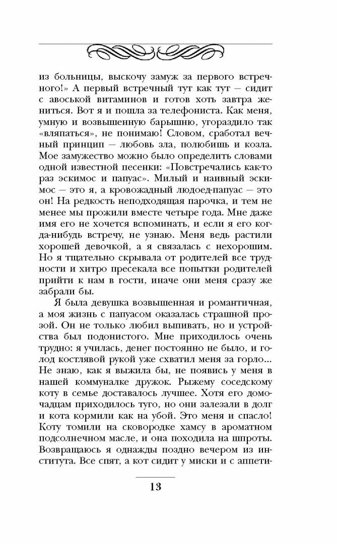 Как только получила книгу сразу начала читать, запоем! В книге опубликованы и стихи и небольшие рассказы из жизни, рассказы о самой Ларисе, о ее друзьях, соседях, случайных знакомых. Как всегда с долей иронии, во всех случаях грустное, но жизненное повествование. Прочитав небольшой рассказ всегда хотелось закрыть книгу и подумать. Это не простая бесконечная мыльная и приторная история любви, а откровенный рассказ своей непростой жизни! Я рекомендую приобрестии прочитать.