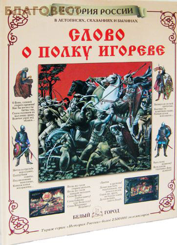 Издание приятно удивило. Бумага глянцевая, качество картинок - хорошее, в отличие от других изданий серии История России. Отпечатано издание в Италии. По содержанию: очень полезное и удобное издание "Слова..." в переложении Жуковского. Слева - текст Жуковского, справа - подробные пояснения и историческая информция. Есть карта похода, иллюстрации костюмов воинов. Много репродукций известных художников касательно темы. На заднем форзаце - родословная русских князей (схема).