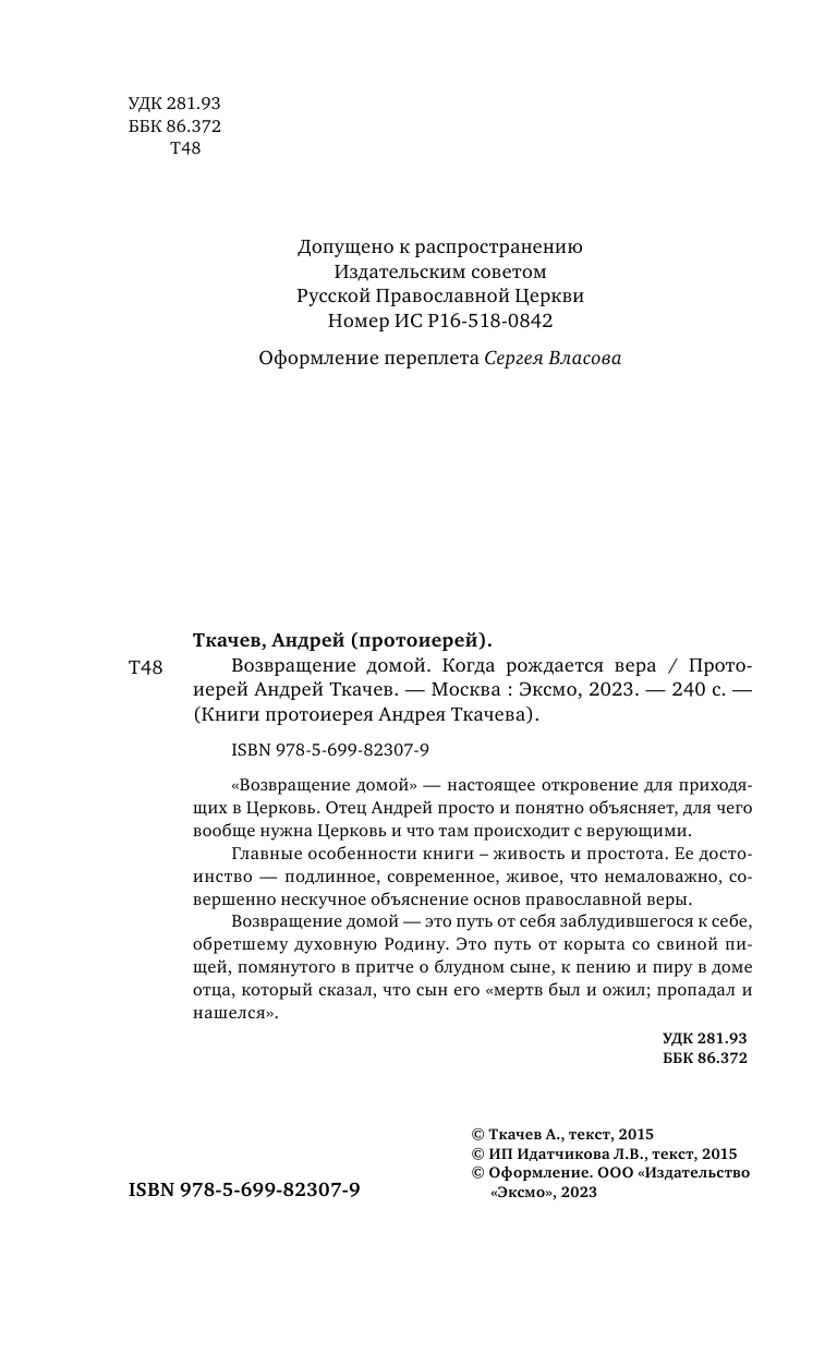 Сервис сравнения цен СкидкаГИД предлагает сравнить цены на товар «Книга: Возвращение домой. Когда рождается вера (Ткачёв Андрей); Эксмо, 2015»
