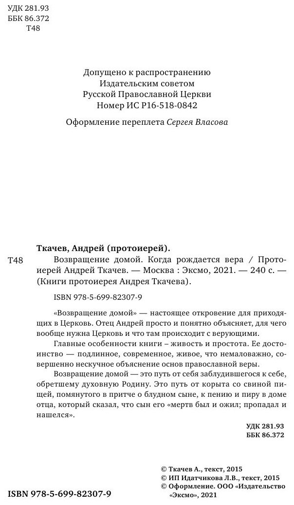 Возвращение домой. Когда рождается вера (Ткачёв Андрей); Эксмо, 2015