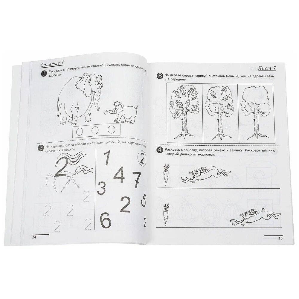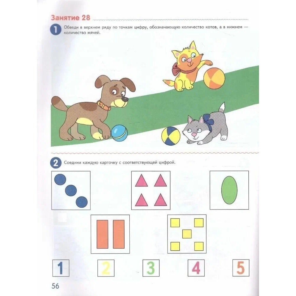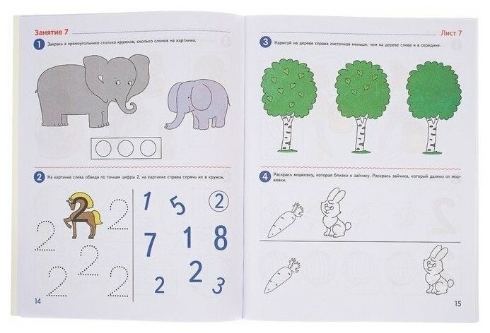 Задания простые и понятные, кстати, не требуются дополнительно прописи, так как ребёнок прямо в тетради может потренироваться в написании цифр.
