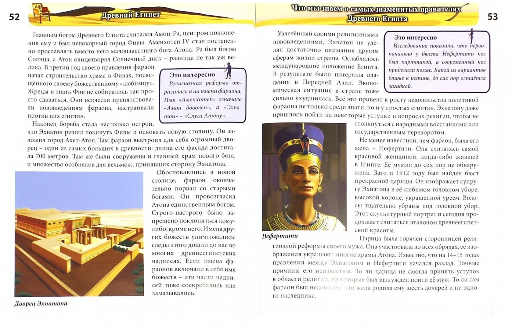 Интересная информация, занимательные факты, яркие иллюстрации, широкий круг тем - всё это вы найдёте в данной энциклопедии! Вы узнаете о том, как жили люди в Древнем Египте, почему все пирамиды расположены с одной стороны от Нила, каким богам поклонялись египтяне и многое другое. Такой подарок обязательно заинтересует