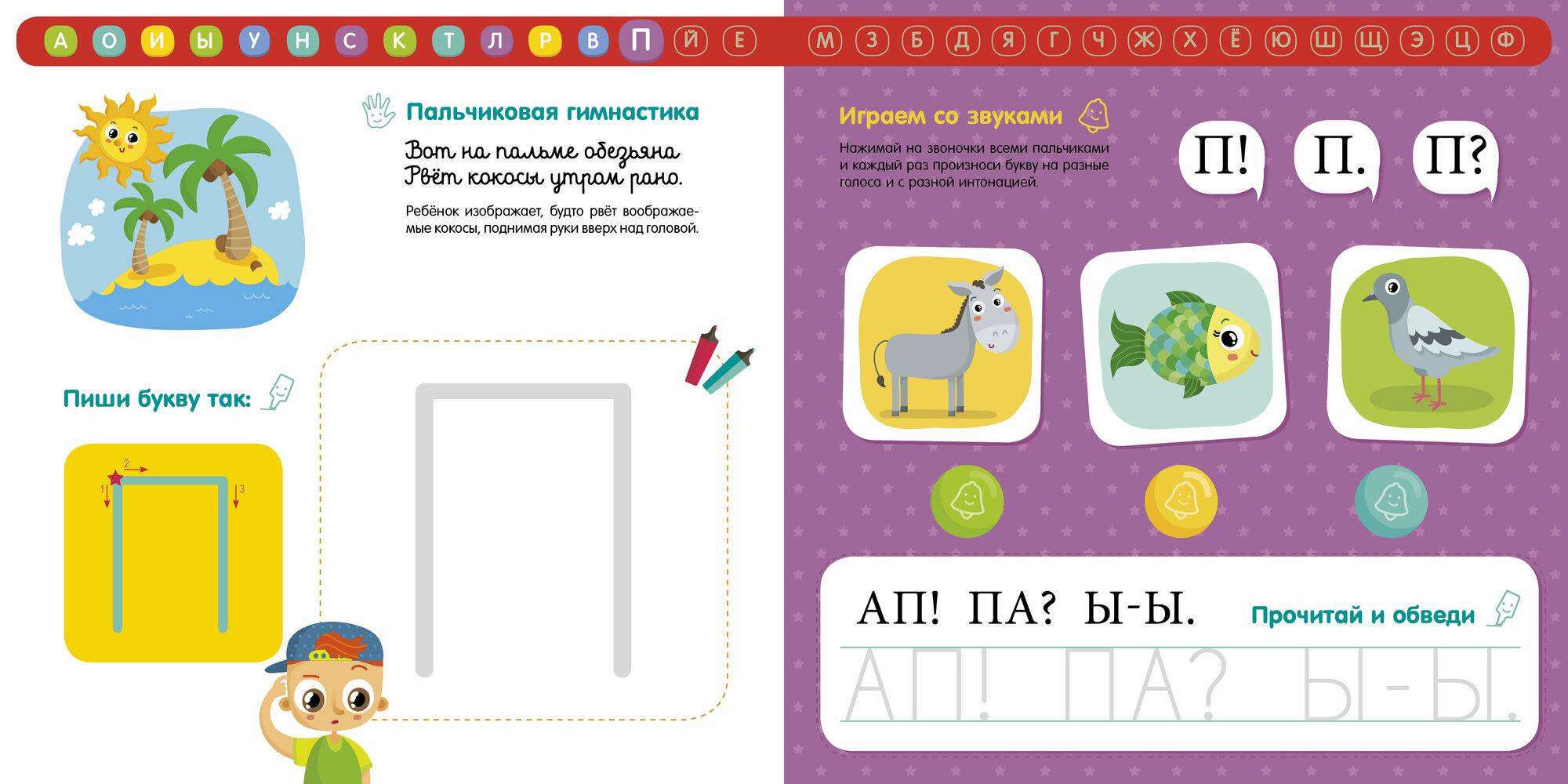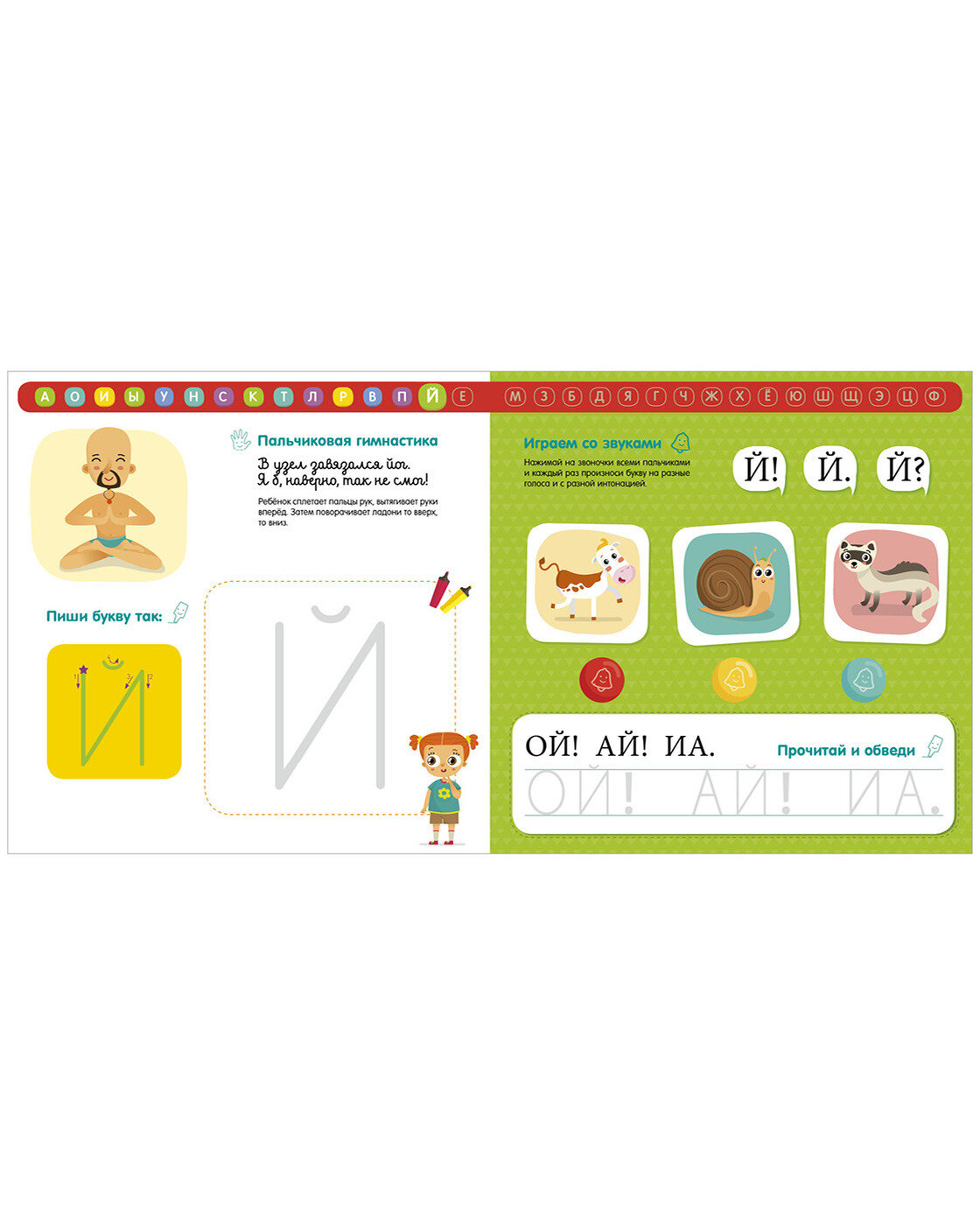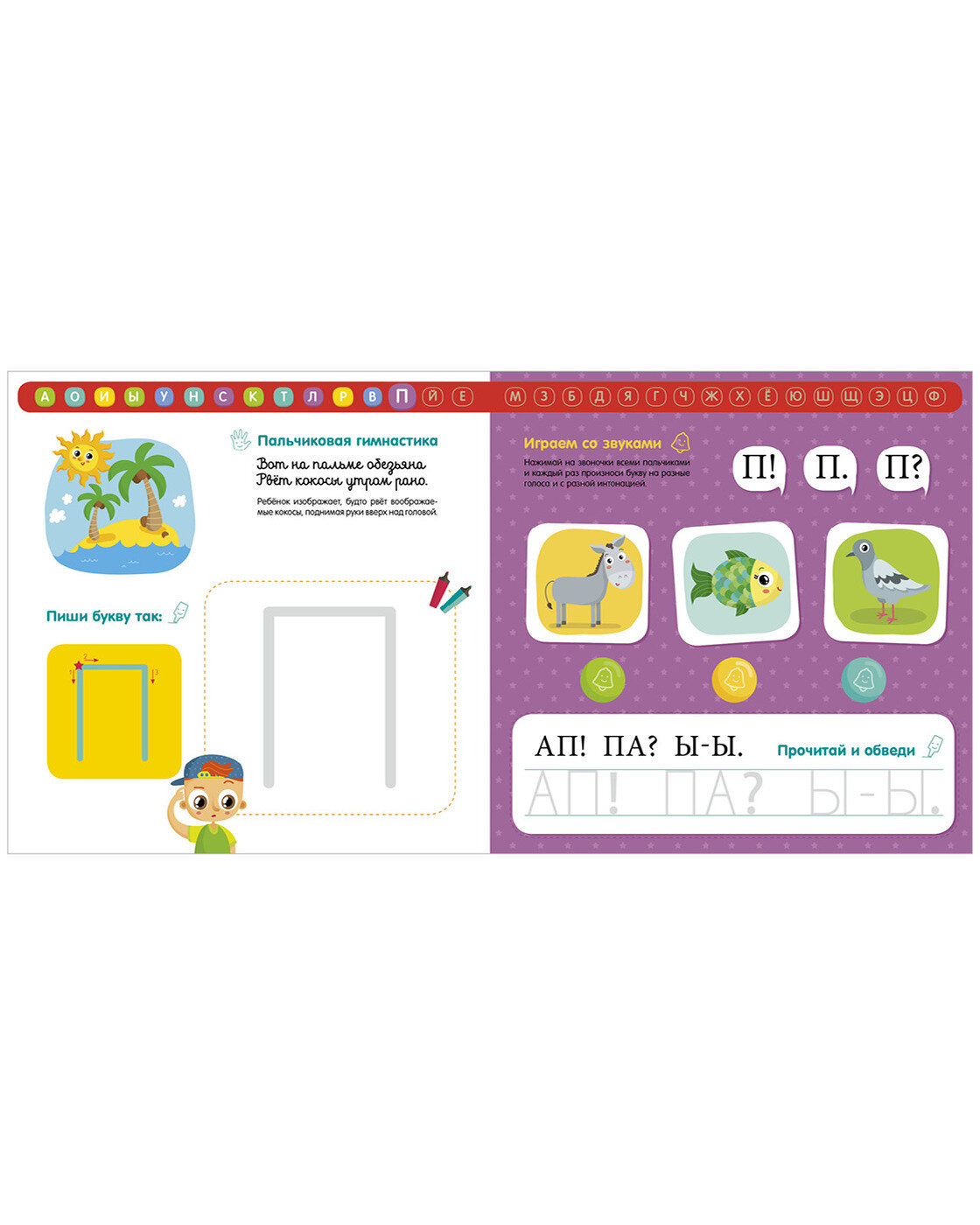 Опробовали сегодня книгу, ребенок с полутора лет знает почти все буквы, сейчас ему почти 3 и он с удовольствием проговаривает по книге голосами животных с интонацией. В ней же пишем, с ней забавляемся и учимся читать-писать.