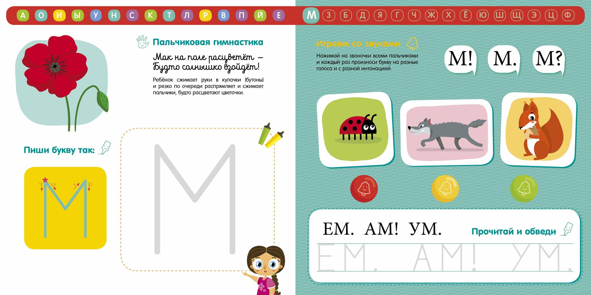 В этой книге вы найдете разрезную кассу букв, с помощью которой ребенку будет легко запомнить буквы, научиться читать и писать мини-предложения и даже выучить знаки препинания.