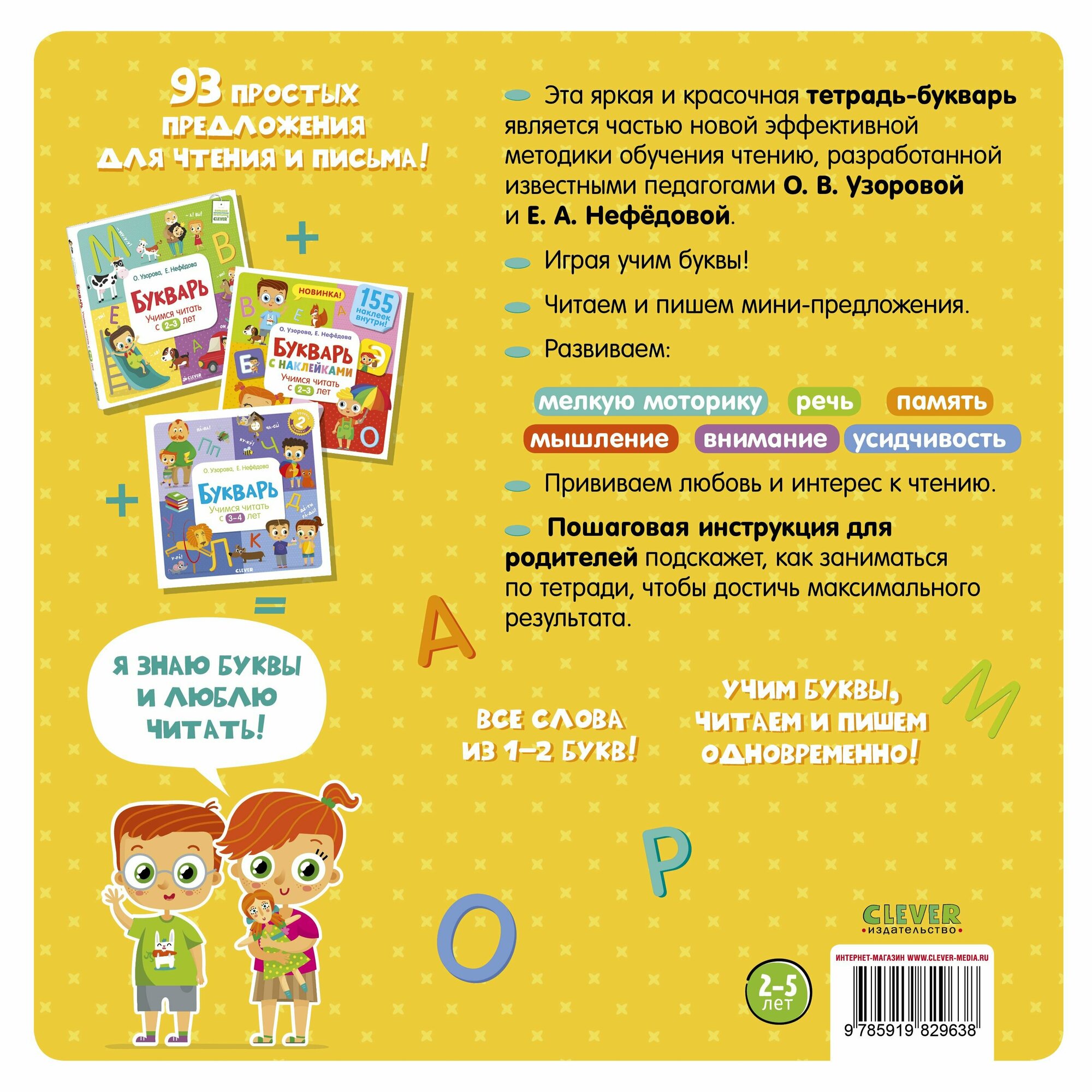 Новое издание тетрадки-букваря сделано по самой эффективной методике обучения чтению и письму, разработанной известными педагогами Ольгой Узоровой и Еленой Нефедовой. А для них главное - увлечь детей занятием.